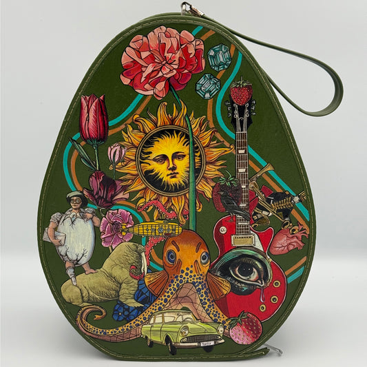 Michelle Hazen is an innovative, mixed media artist who has been a chameleon of creativity and versatile creator of eclectic and visual arts in nearly every medium for over 30 years. Her cutting-edge approach to wearable art, transforms vintage handbags into graphic and expressive, one-of-a-kind pieces that blend fashion, nostalgia, and musical inspiration, carving out a unique niche where music, art, and style converge.